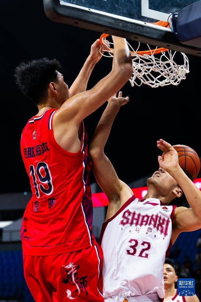 3月23日,广州朗肽海本队球员徐昕(左)在比赛中扣篮。